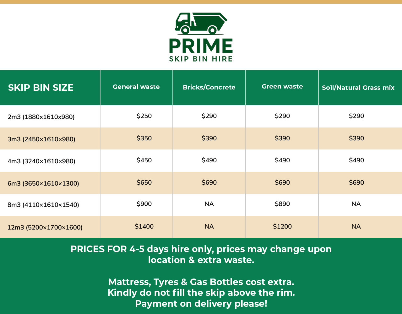Skip bins provided by Prime Skip Bin Hire offer a reliable and versatile solution for managing all types of waste — making them ideal for residential, commercial, and construction cleanups across Melbourne’s western suburbs. Commonly used on building and demolition sites to handle bulky or non-compressible materials, our bins are equally effective for home renovations, office cleanouts, and garden waste removal.